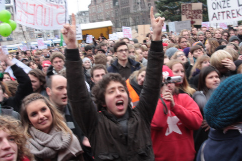 Studenten demonstreren tegen collegegeld verhoging op de Dam - 10 december 2010