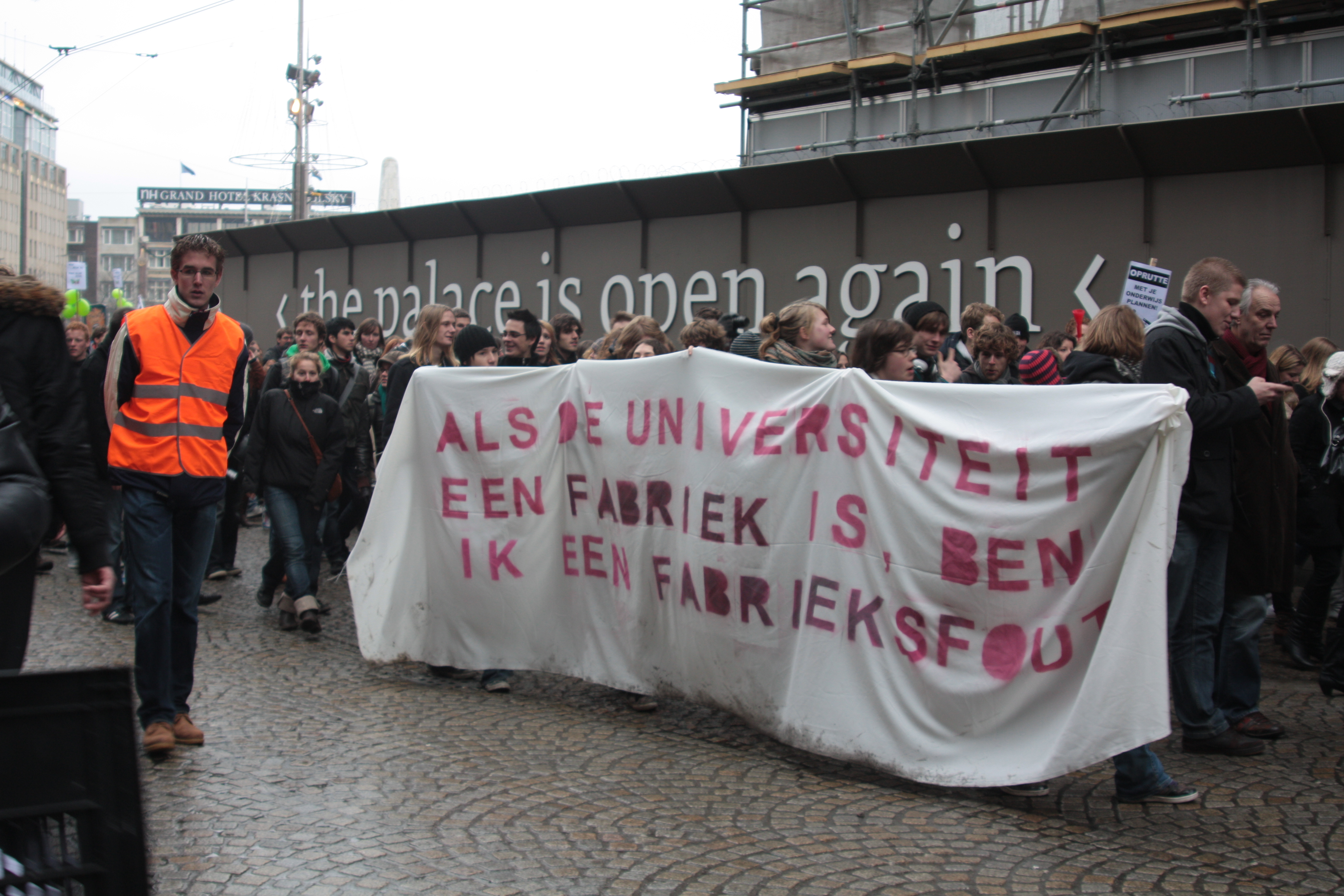Studenten demonstreren tegen collegegeld verhoging op de Dam - 10 december 2010