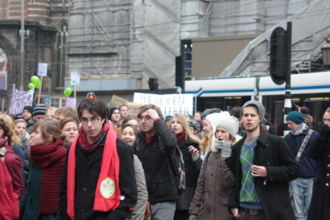Studenten demonstreren tegen collegegeld verhoging op de Dam - 10 december 2010