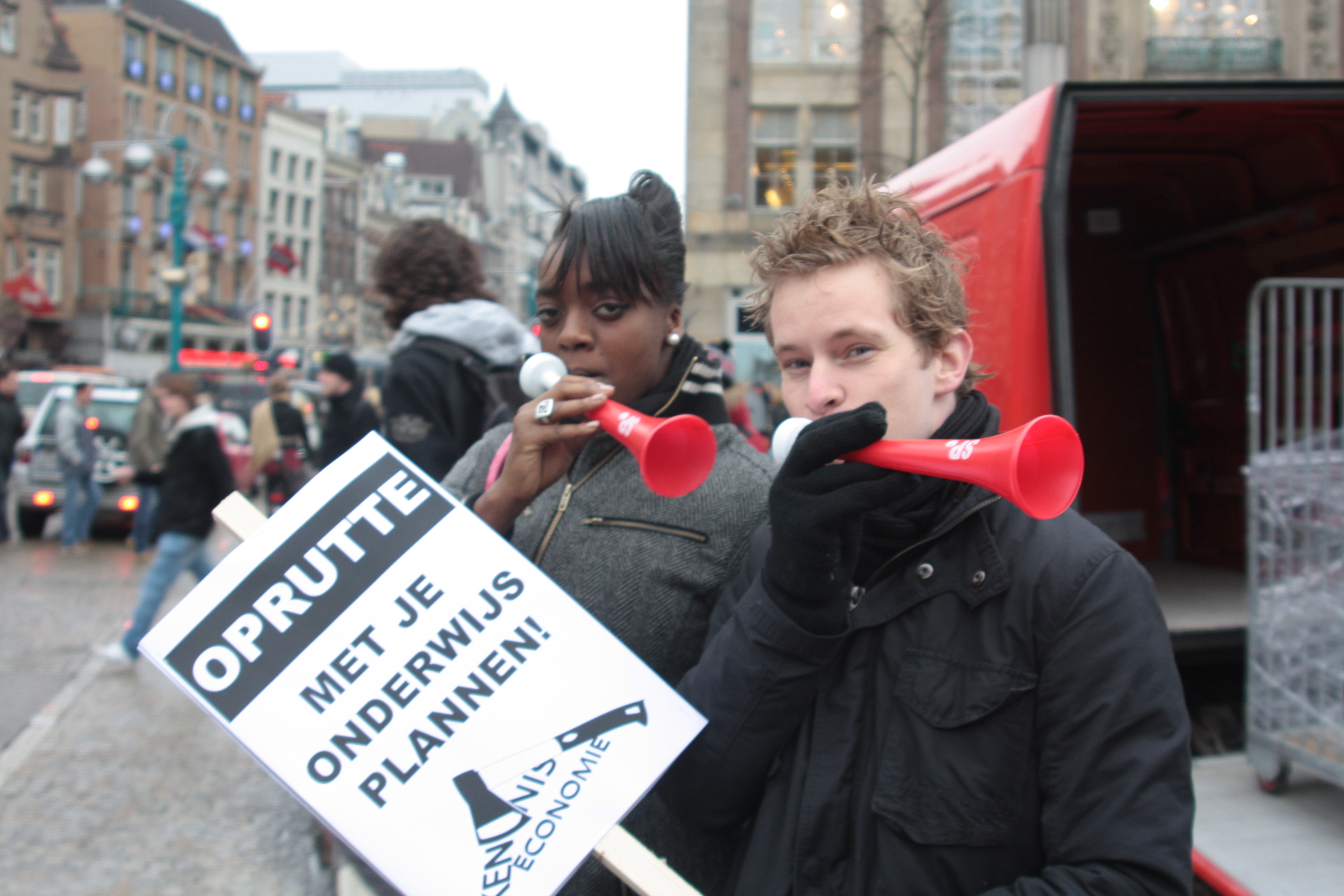 Studenten demonstreren tegen collegegeld verhoging op de Dam - 10 december 2010