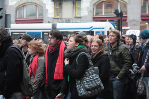 Studenten demonstreren tegen collegegeld verhoging op de Dam - 10 december 2010