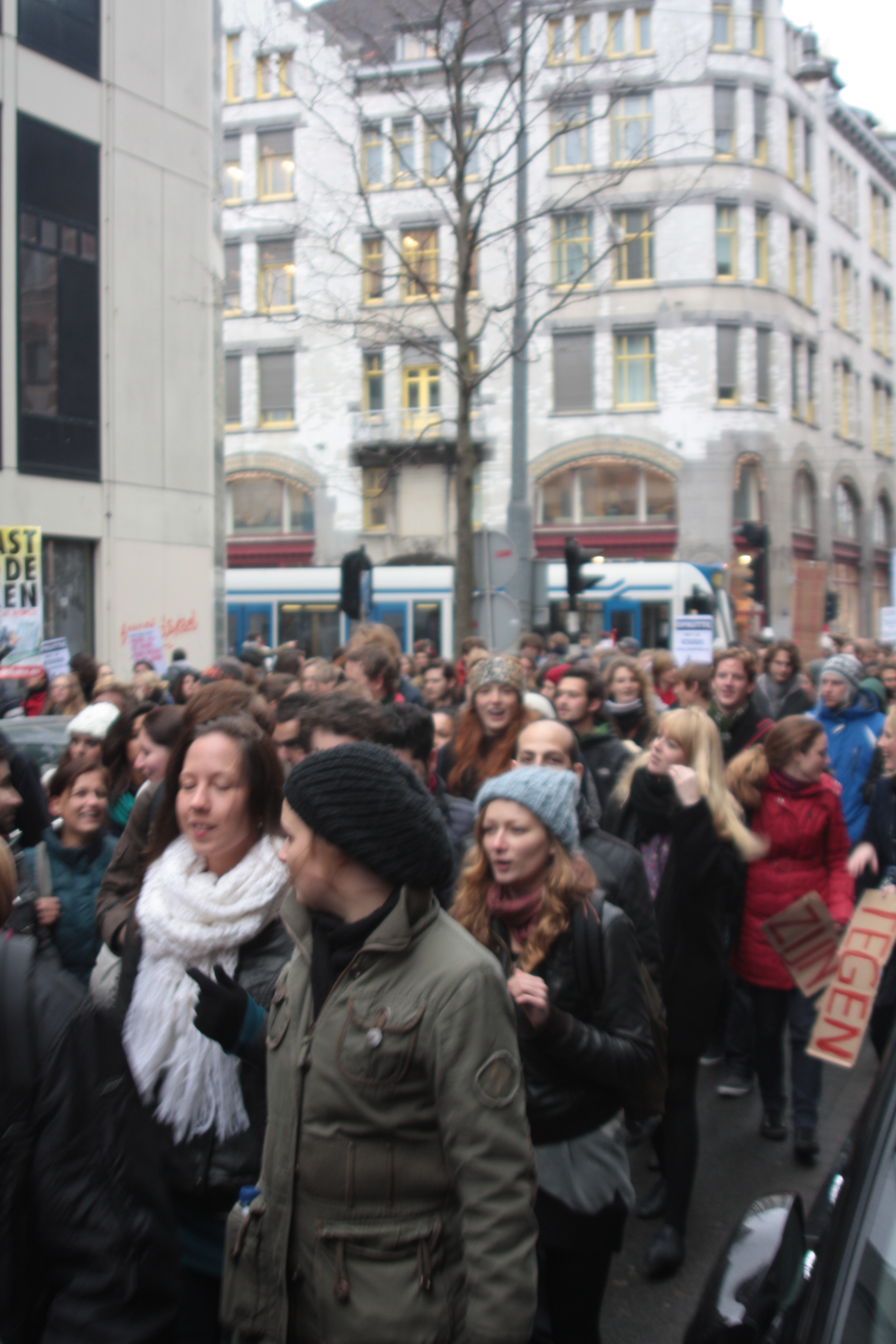 Studenten demonstreren tegen collegegeld verhoging op de Dam - 10 december 2010