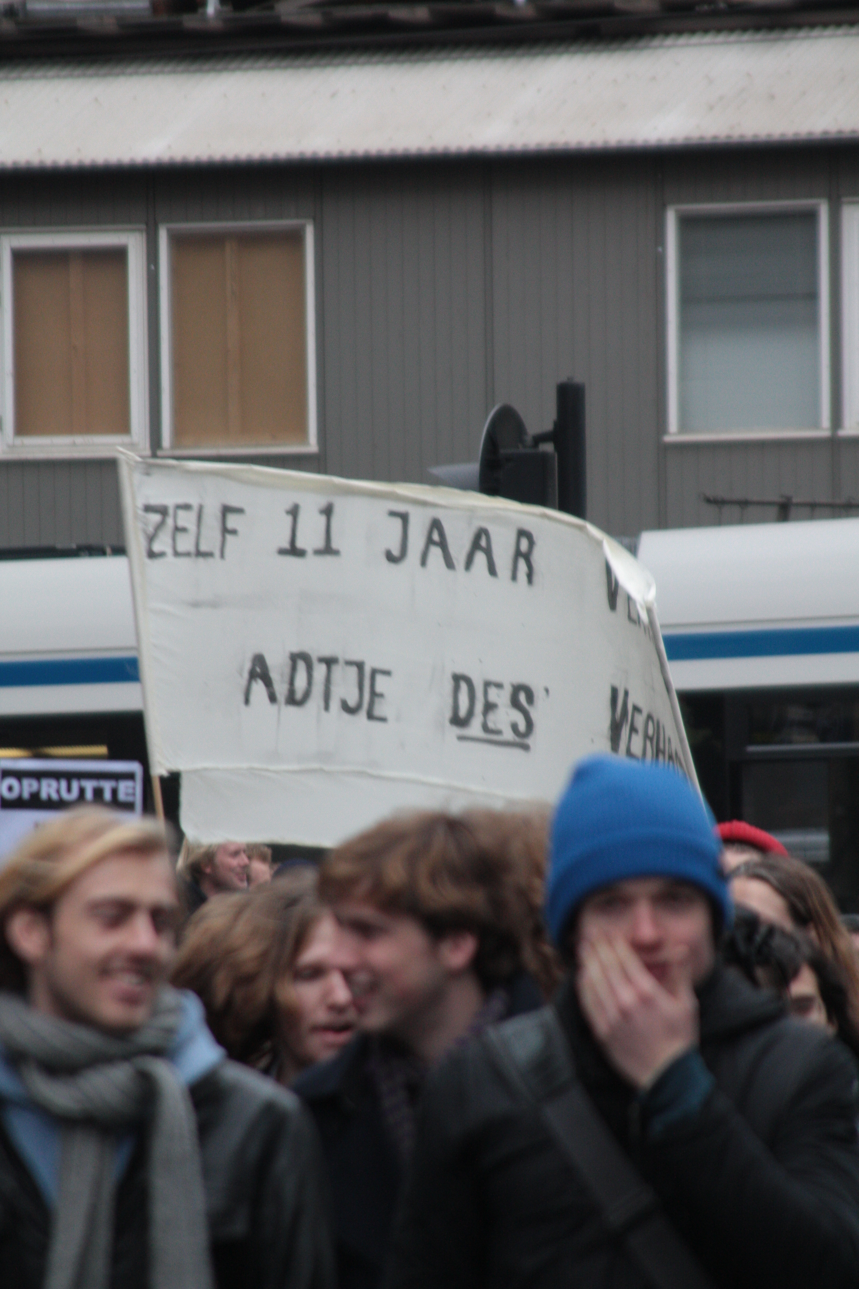 Studenten demonstreren tegen collegegeld verhoging op de Dam - 10 december 2010