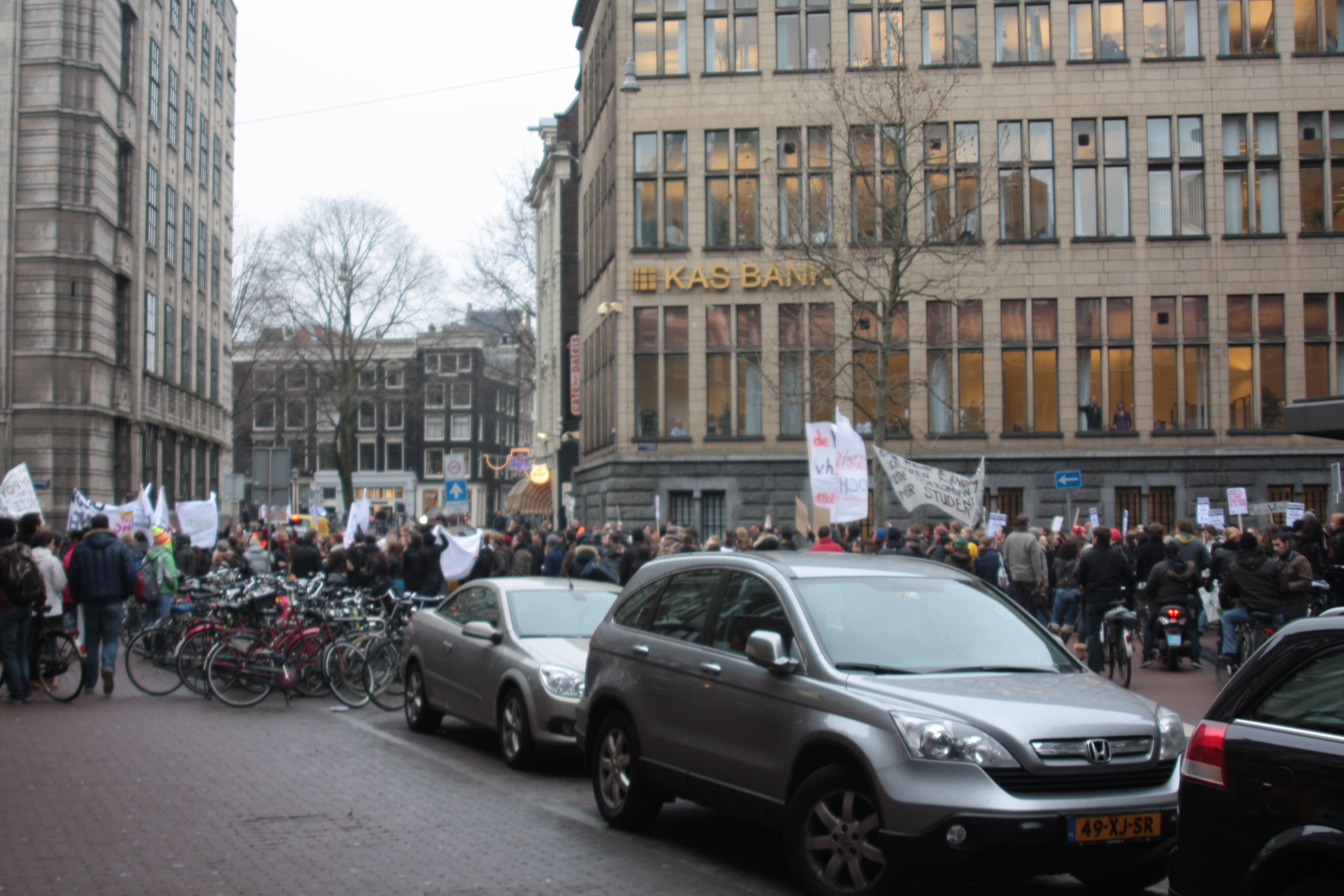 Studenten demonstreren tegen collegegeld verhoging op de Dam - 10 december 2010