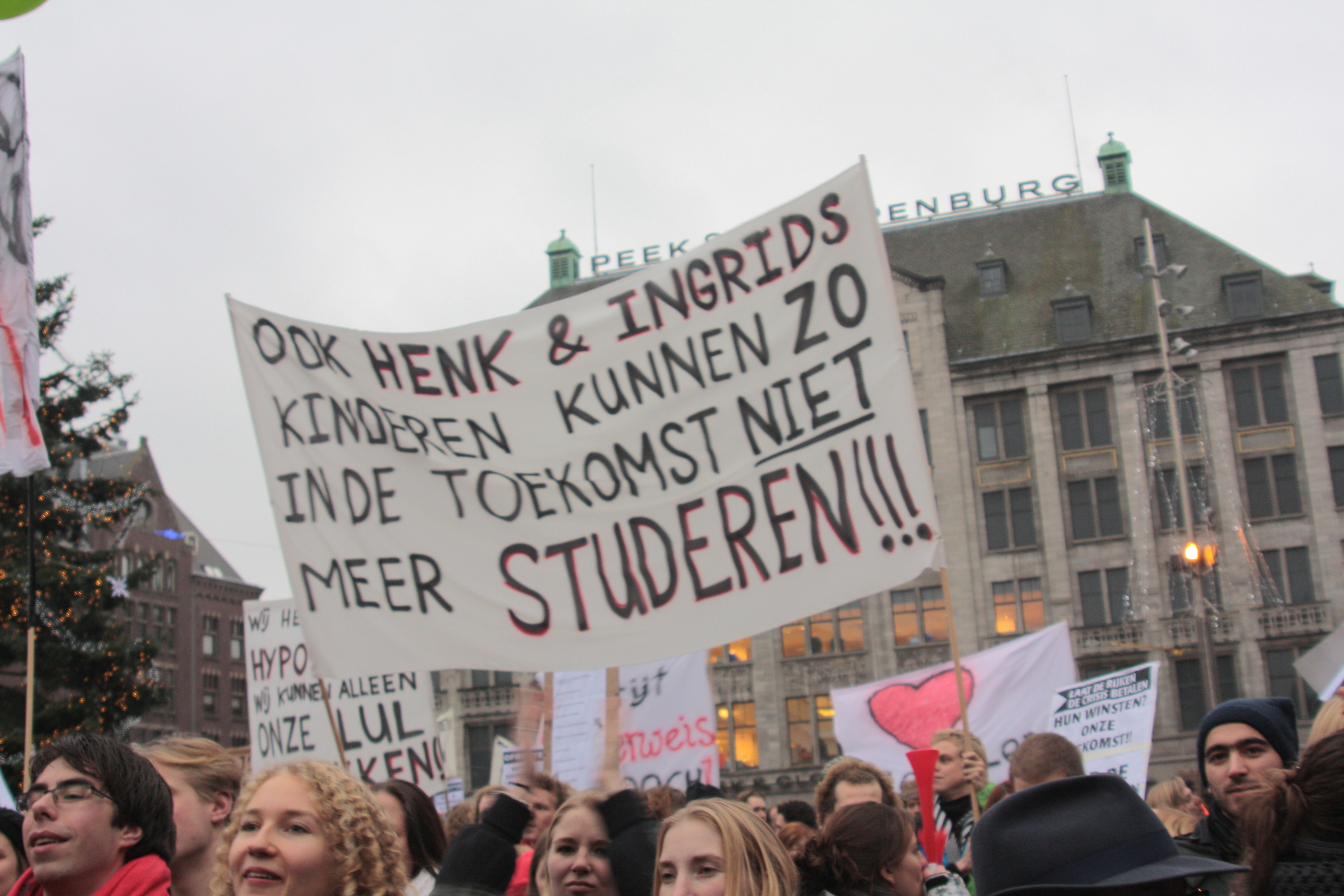 Studenten demonstreren tegen collegegeld verhoging op de Dam - 10 december 2010
