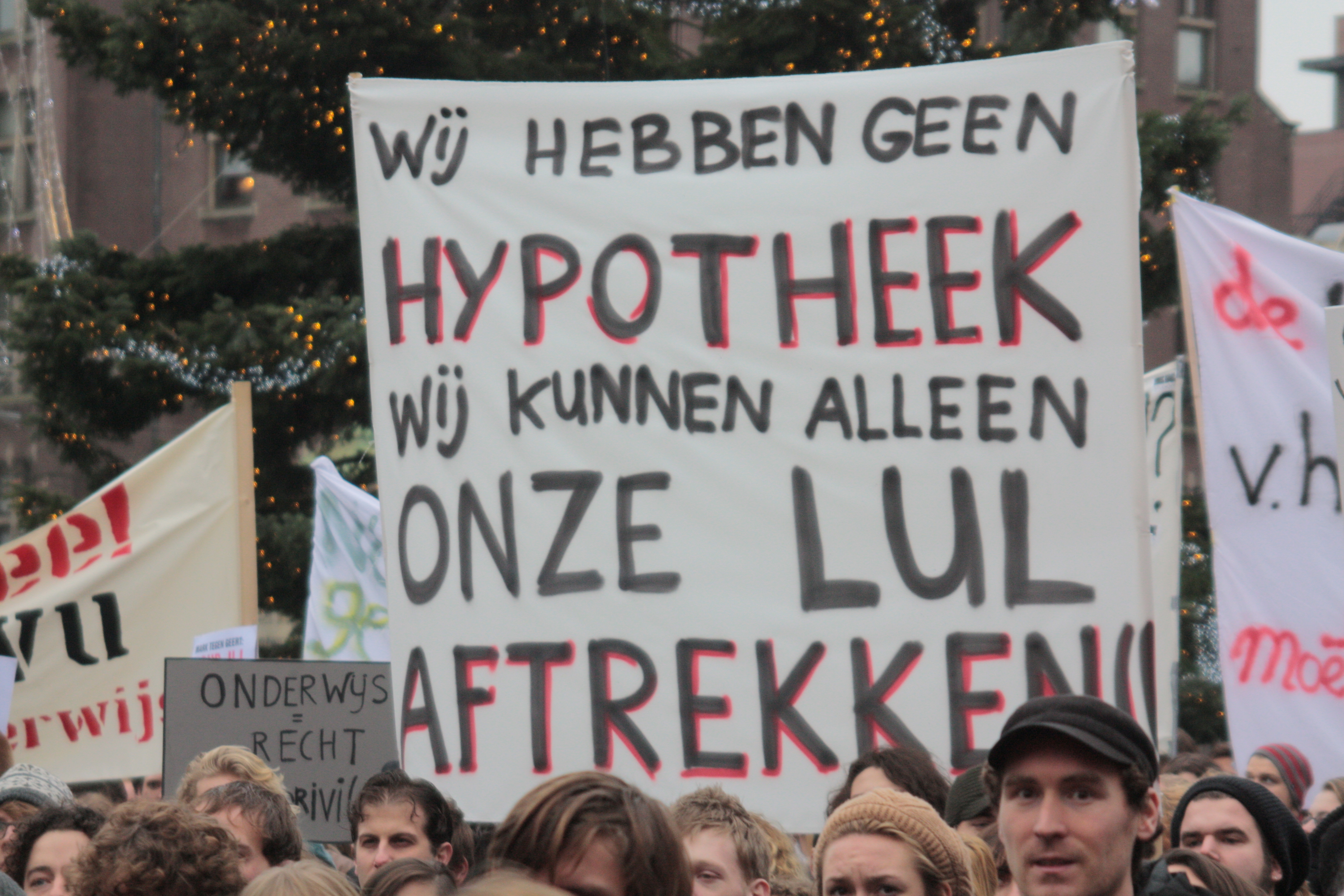 Studenten demonstreren tegen collegegeld verhoging op de Dam - 10 december 2010