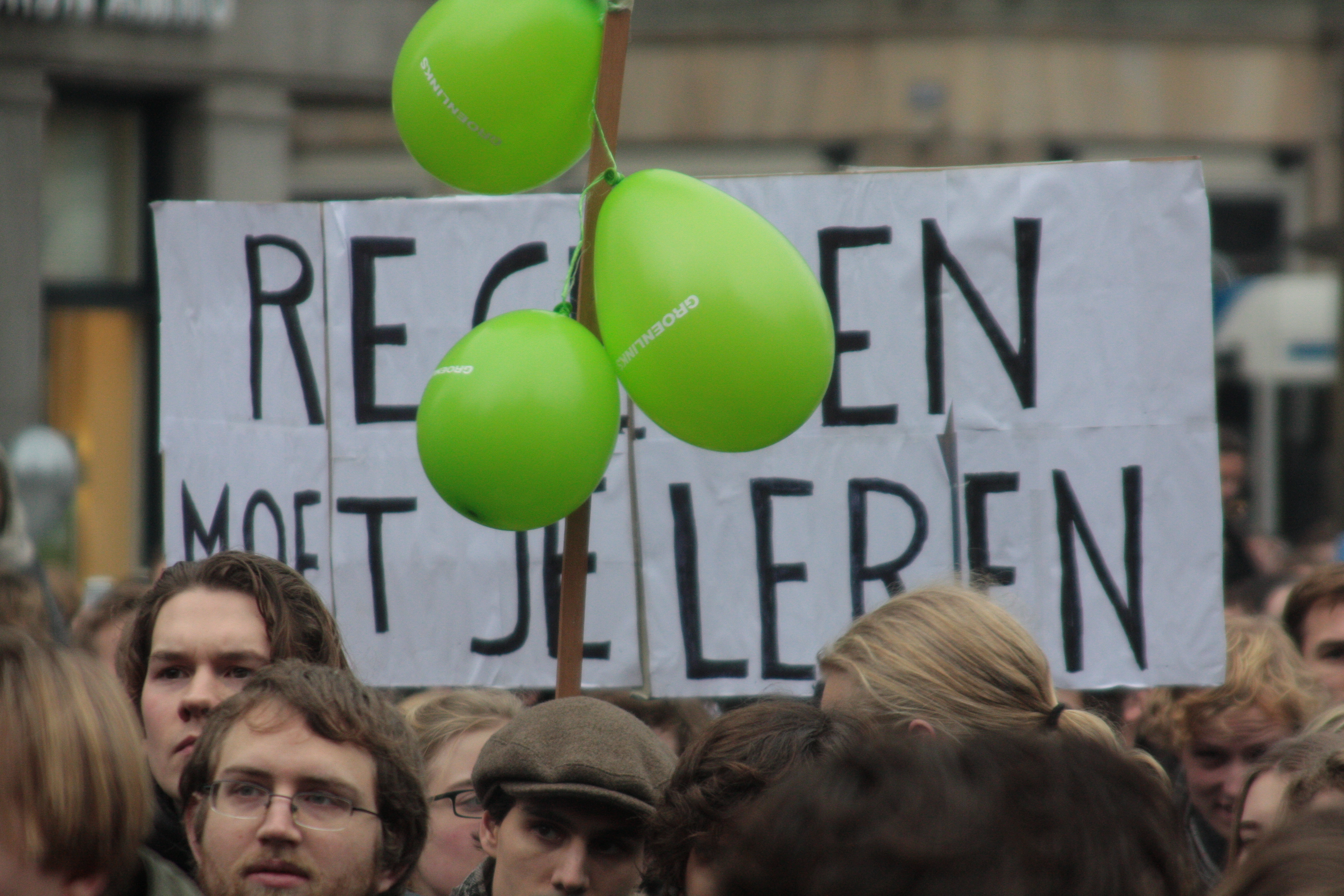 Studenten demonstreren tegen collegegeld verhoging op de Dam - 10 december 2010