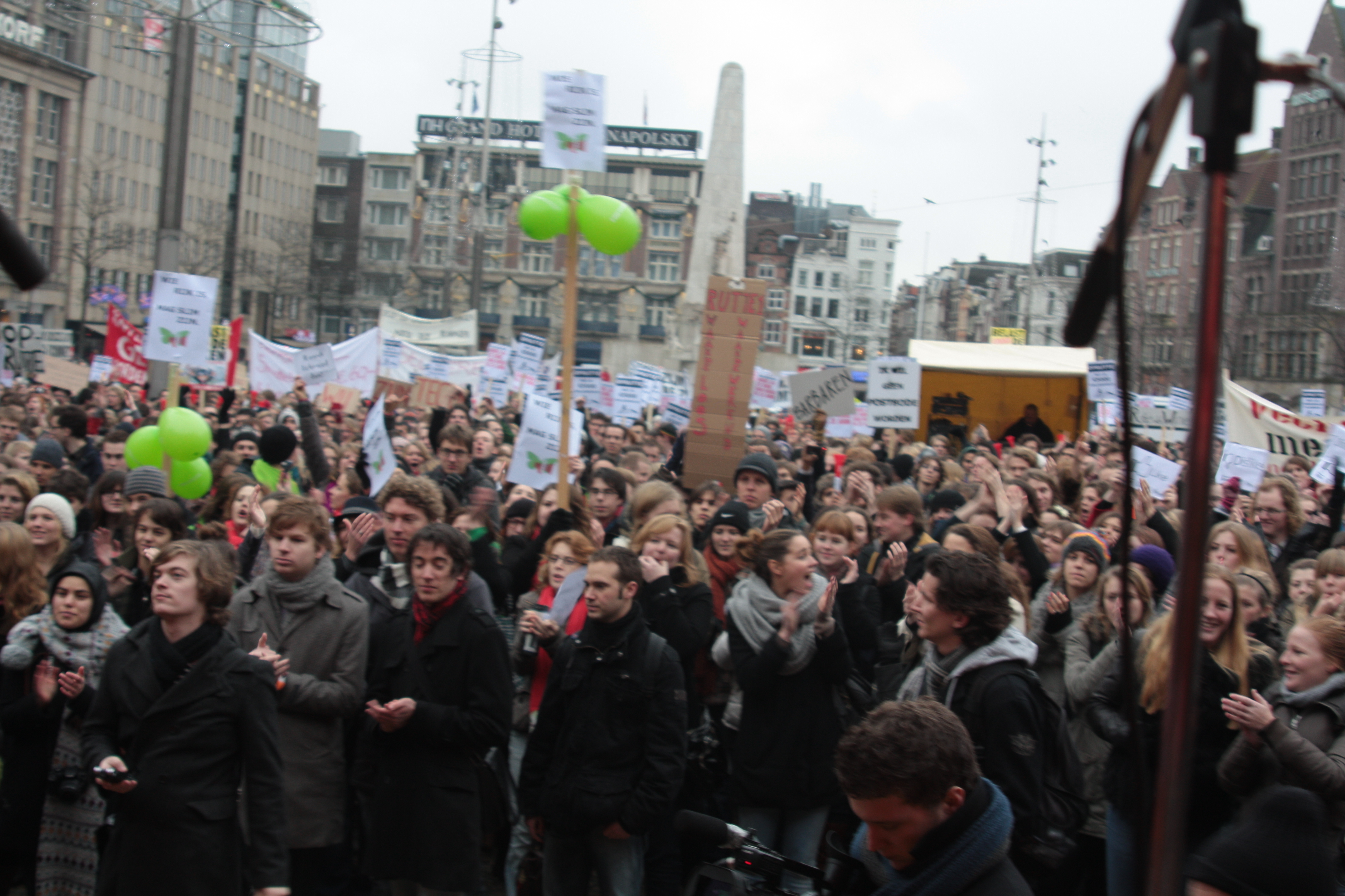 Studenten demonstreren tegen collegegeld verhoging op de Dam - 10 december 2010
