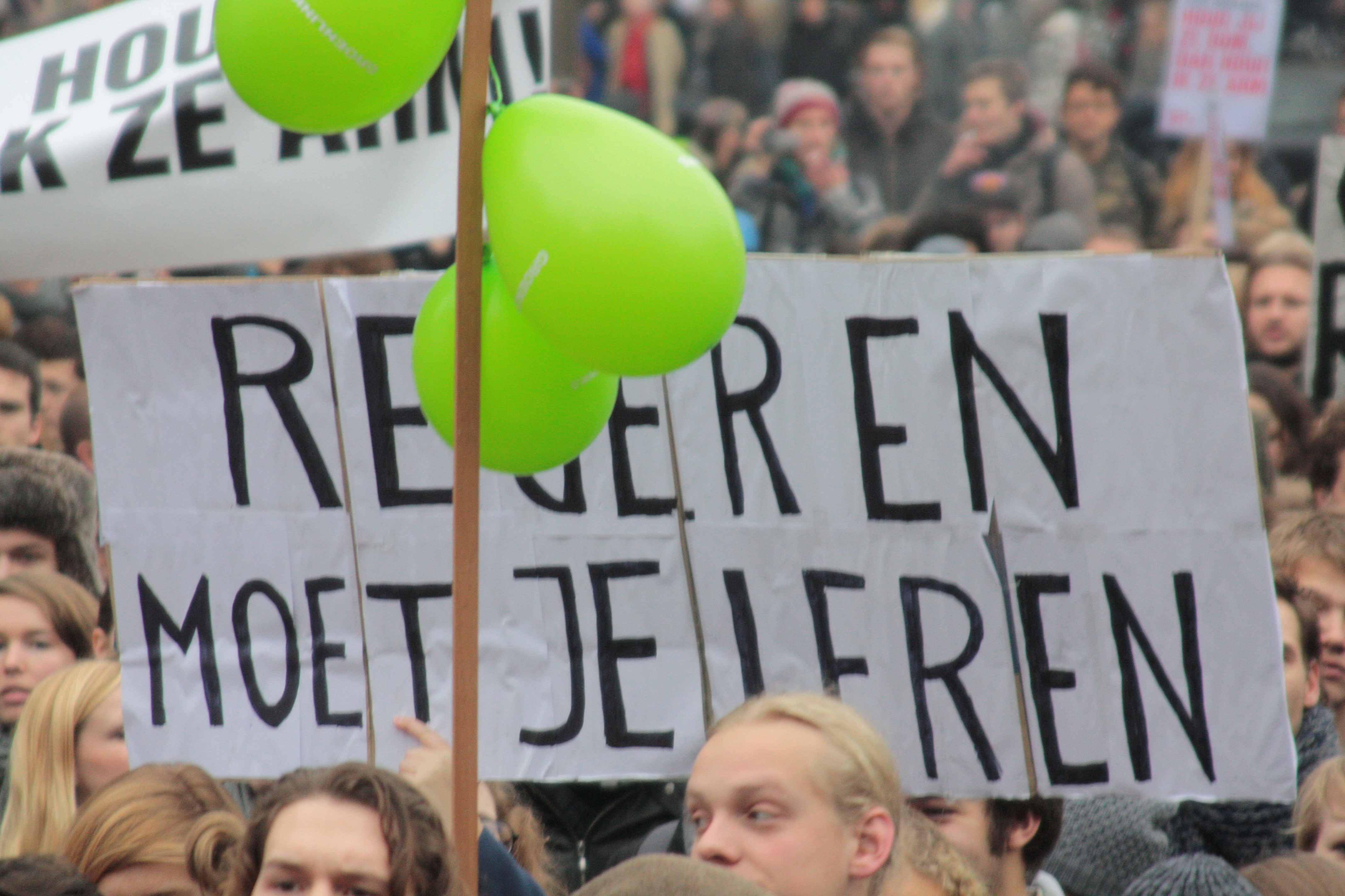 Studenten demonstreren tegen collegegeld verhoging op de Dam - 10 december 2010