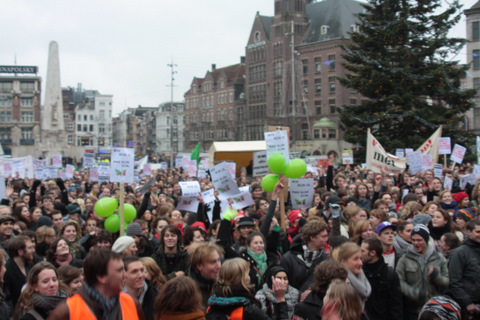 Studenten demonstreren tegen collegegeld verhoging op de Dam - 10 december 2010