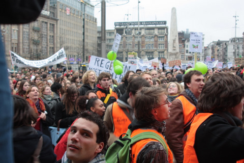Studenten demonstreren tegen collegegeld verhoging op de Dam - 10 december 2010